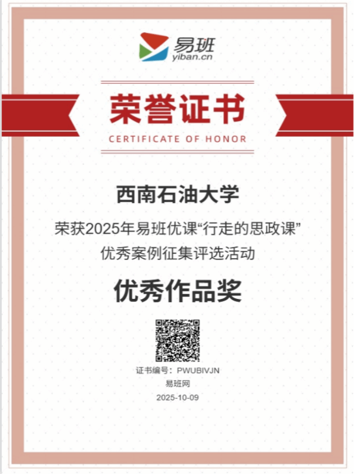 近日,为征集和宣传各地易班共建高校组织的优秀的“行走的思政课”教学案例,易班网在2025年举办了2025年易班优课“行走的思政课” 优秀案例征集评选活动,活动期间总计收到来自全国21个省级单位122所高校的案例作品,总计14.75万大学生参与投票活动。经决赛评审专家团严格审核、专业评议,最终 10 部作品脱颖而出斩获 “优秀作品奖”。其中,我院报送的《行走的思政课 —— 推普画笔绘羌山,青春之声暖彝寨》案例成功入选,以生动实践与创新形式,彰显我院 “行走思政” 育人成效,获评审团高度认可。