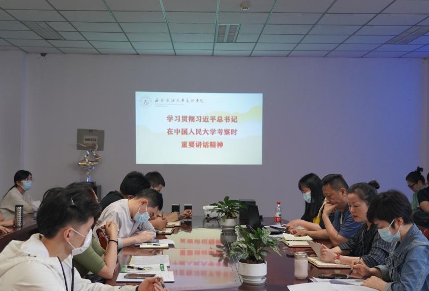 2022年5月5日,我院在艺术楼306召开全体教职工学习专题会议,专题学习习近平在中国人民大学考察时的重要讲话精神。院党委书记夏艳主持会议,全体教职工参加会议。