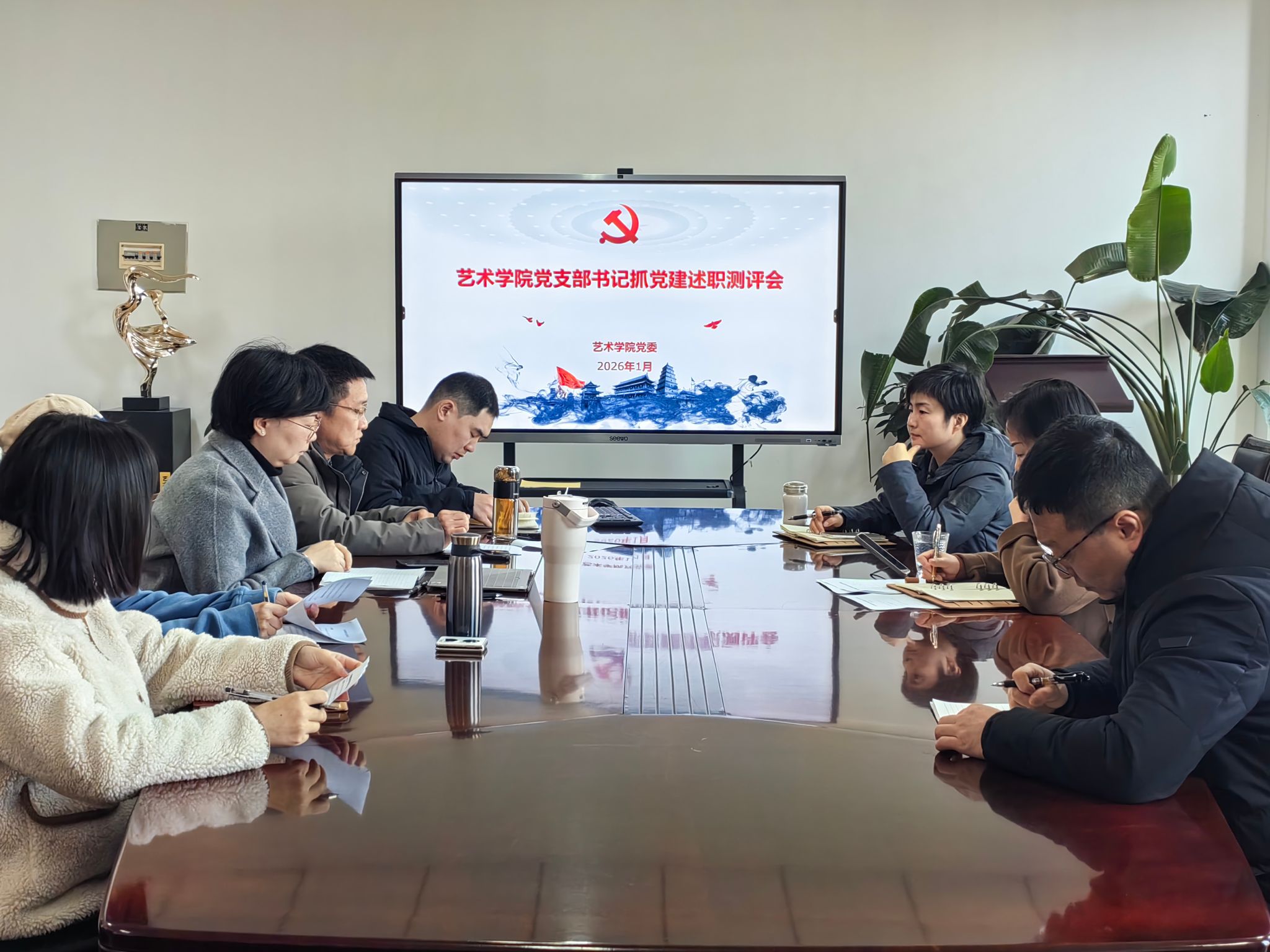 2026年1月9日,艺术学院党委于艺术楼306会议室召开2025年度党支部书记抓党建述职测评会。会议由学院党委书记夏艳主持,全体党委委员、党支部书记参加会议。