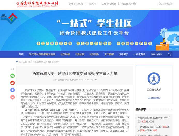 美育小筑微社区以美的“感、知、行”为实现路径,扎根于学生寝室,用寝室作为美育的另一切入点,让美可知、可感、可行,将美渗透进学生的学习与生活,让学生对“美”的认同更深、体悟更强。