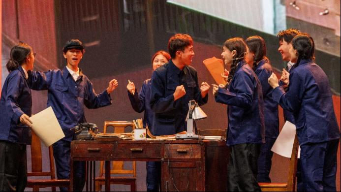 在展演活动现场,由秦敏、李安然所指导,艺术院吴梓晴、甄天泽、李铮皓和外语院朱小会等同学的表演作品《他的姓名曾是最高机密——中国核潜艇之父彭士禄》代表我校获奖作品进行了精彩展示。该作品讲述了“时代楷模”“感动中国2021年度人物”彭士禄为国改换专业,投身核动力事业的事迹。彭士禄将一生的热血融入祖国的核动力事业,“只要祖国需要,我愿意贡献一切”的忠贞诺言,点燃了祖国核潜艇和核电事业之光,成为“中国核动力事业的拓荒牛”,感动了在场的所有人。