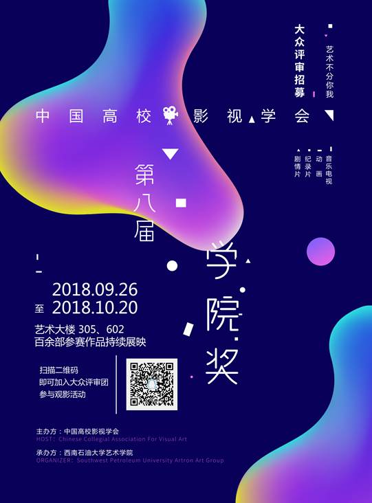 2018年9月26日至10月20日,中国高等院校影视学会第八届“学院奖”初选系列活动在西南石油大学艺术学院举行。来自西南地区各高校的200余位评委代表,在持续一周的时间内分组评审了四百多部参赛影片。经过一个星期的整理,最终评选出110部师生作品送到银川参加最终评审。