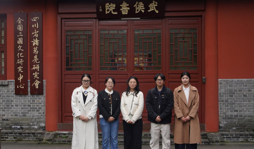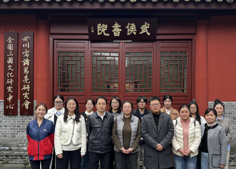 2025年11月11日,三国文化海外传播研究课题组前往成都武侯祠博物馆进行调研。课题组王诗秒副教授、戏剧与影视专业研究生王博文、陈雨暄睿、刘佳童、卢佳麒一行,与工作人员一同,围绕相关主题展开研讨。