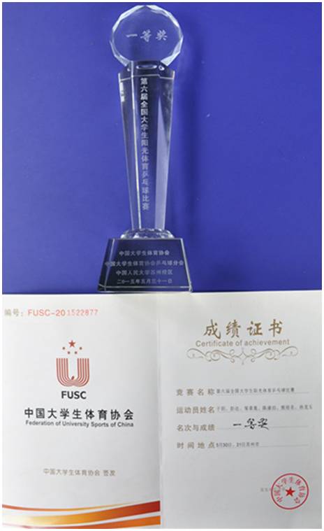 本次比赛由中国大学生体育协会主办、中国人民大学苏州校区承办。阳光体育一直以“我锻炼、我健康、我快乐”为宗旨,让学生们有所发挥、有所释放;比赛选手分别来自全国各地32所高校,高手如云、强强对决。在激烈角逐中我院孙龙玉同学不畏强手、敢于拼搏,展现出了高超的技艺,赛出了石大人的拼搏精神。
