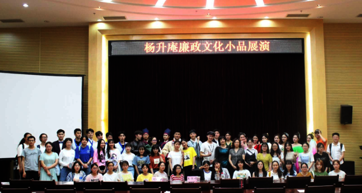 律己廉为首,立德世在先。为进一步学习宣传贯彻党的廉政自律精神,深入开展理想信念宗旨和纪律教育,坚定不移推进全面从严治党,推进廉洁文化建设和廉政教育工作,我校艺术学院与中共成都市新都区委宣传部,新都区文学艺术界联合会携手打造《升庵廉政文化小品》系列展演并在西南石油大学、成都医学院、升庵中学、汉城小学及黄桷树广场进行了5次专场演出,观众累计近5000人。杨升庵第十四代世胄杨德力先生、四川省教育厅体卫艺处卢旭、新都区纪委常委谢敬、新都区文联主席罗朝荣、新都区纪委驻宣传部纪检组副组长刘学泽、新都区教育局党办陶凤主任、工会副主席何丹、新都区妇联副主席周琳芳等老师出席观看并给与了高度评价。