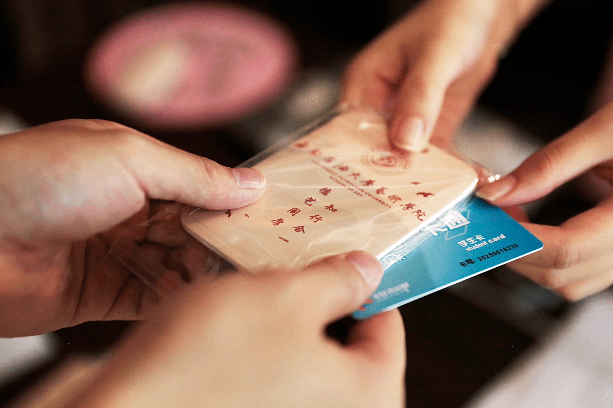 值得一提的是,研会为新生们特别定制了富有艺术感的校园卡套。卡套以学院标识色为主调,融合青春与学术元素,既实用又寓意深远——愿每一位新生在这里书写属于自己的精彩篇章。报到现场,辅导员亲手将这份心意递到每位同学手中,温暖在指尖传递,感动在心间流转。