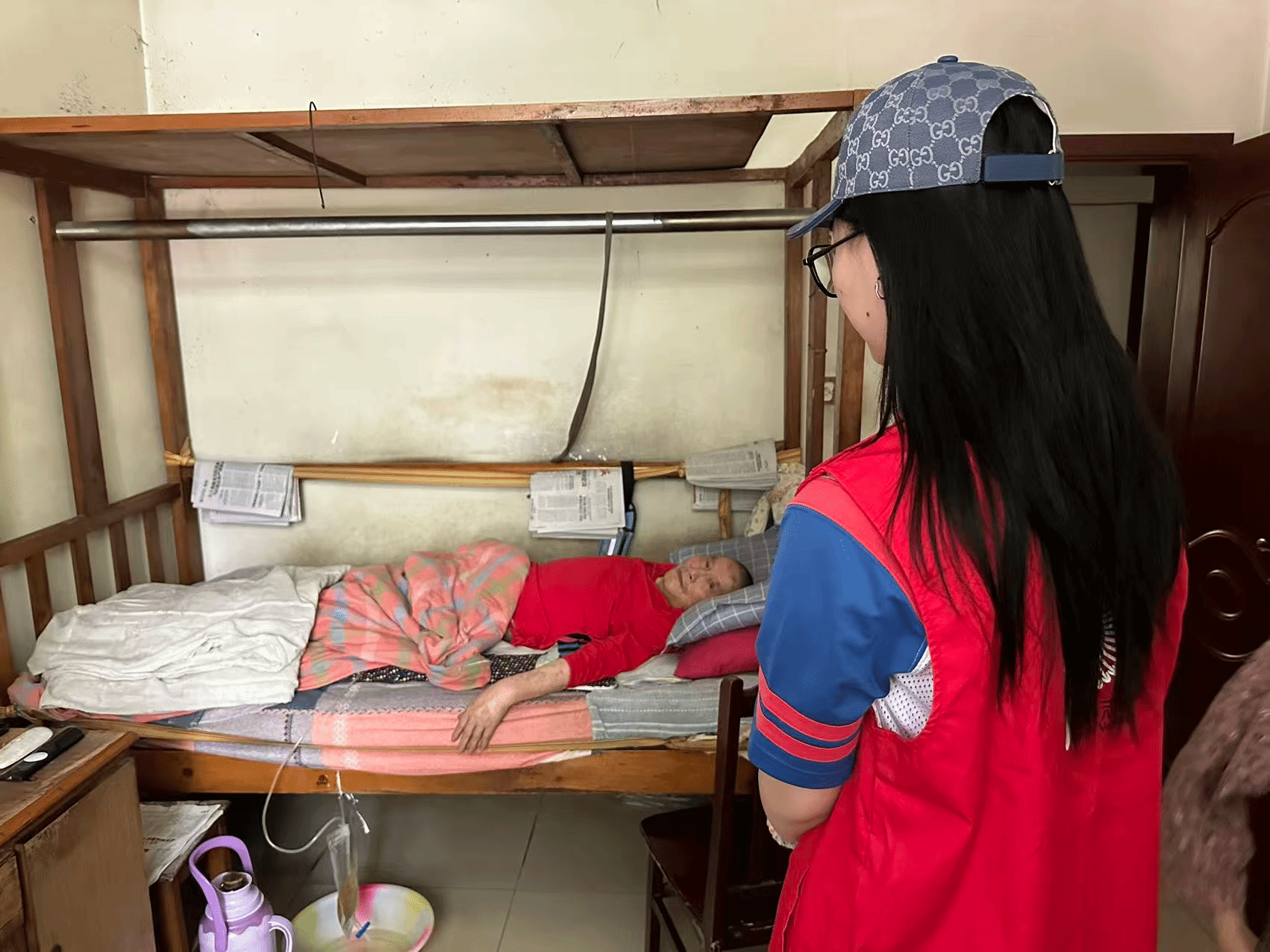 7月10号,实践团队探望了生病的老人李白忠。由于老人行动不便,家中许久未曾彻底清扫,队员们轻手轻脚地开始打扫:扫地、拖地、擦拭家具,将散落的药品按服用时间整理好,还帮老人更换了干净的床单。“孩子们辛苦了,快歇歇,喝口水。”李老躺在床上,看着整洁的房间,眼里满是感激。