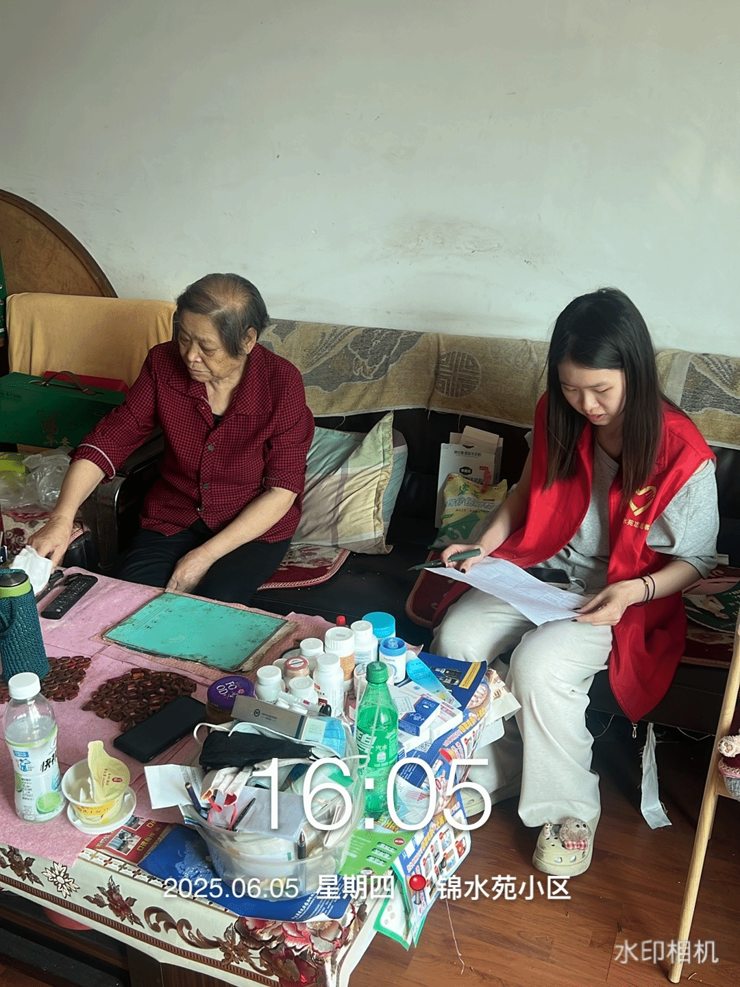 为切实关怀社区空巢老人,让独居长辈感受到社会大家庭的温暖,新都区锦水苑社区联合实践团队开展了“情暖桑榆”系列实践活动。实践团队不仅为老人们提供生活上的实际帮助,如打扫居室卫生、整理杂物、清洗衣物、检查家中安全隐患等,还注重精神层面的陪伴,通过陪老人聊天解闷、倾听他们的过往故事、讲解健康养生知识、协助购买生活必需品等方式,全方位为老人们的生活增添便利与暖意。活动从7月8号持续至15号,实践团队用真诚与行动,为社区空巢老人的生活注入了青春活力。