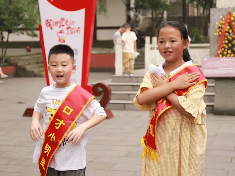 7月10日上午,在新都区大丰街道社区活动中心室外场地,孩子们在实践团队成员的带领下,齐声朗读《七律·长征》《可爱的中国》等经典红色诗歌,铿锵有力的诵读声回荡在活动现场,展现了新时代少年儿童积极向上的精神风貌。现场气氛热烈,孩子们热情高涨,不少家长也驻足观看,纷纷为活动的教育意义点赞。大丰街道社区负责人表示:“此类活动不仅丰富了少儿的课余生活,更通过寓教于乐的方式将爱国情怀根植于孩子们心中,未来将持续联合高校和社会力量开展更多特色文化活动。”