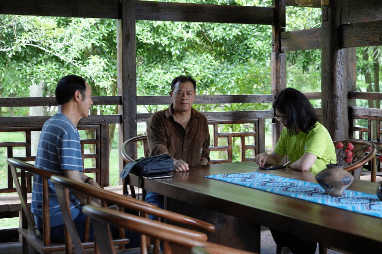 随后,团队又走访了何氏根雕的非遗传承人何平。何平先生的工作室坐落于唐崖土司城遗址的深山中,我们沿着石砌小路,终于到了在何平的工作室。在这里,形态各异的树根经过精心的构思和细致的雕刻,变成了栩栩如生的人物、动物和景观。老先生坐的笔挺,铿锵有力:“我们论技巧肯定比不过汉族木雕千百年的技巧,但我们生于山林之中,就应该看到这山水间的野性,抓住一个树根最本质的形象,释放它本来的、质朴的灵气。”何平老先生一边演示雕刻技巧,一边分享创作心得,让同学们感受到化腐朽为神奇的艺术魅力,以及他对这门手艺数十年如一日的热爱与坚持。通过对何平先生的深度采访,我们知道了他两次参加国家级比赛,在一众精细的木雕中凭借一尊放牛根雕脱颖而出的经历,他强调根雕最大的特点就是不会去给根材塑形,只会在原有的形状上去雕琢细节。我们也深深领悟到原始的,自然的,民族的就是最好的这句话的意义。