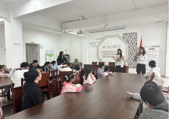 课堂首个环节聚焦 “劳动中的声音密码”。志愿者们不再局限于自然与乐器之声,而是引入农耕劳作、手工制作、集体清扫等劳动场景的声音片段,引导孩子们倾听、辨别不同劳动场景的声音特征。通过互动提问,让孩子们理解 “劳动声音源于实践动作”,同时在细致倾听、精准辨别中,培养劳动所需的专注观察力与耐心。志愿者们强调,如同认真分辨劳动声音一般,劳动中唯有全神贯注,才能高效完成任务,让孩子们在声音探索中初步建立严谨的劳动态度。
