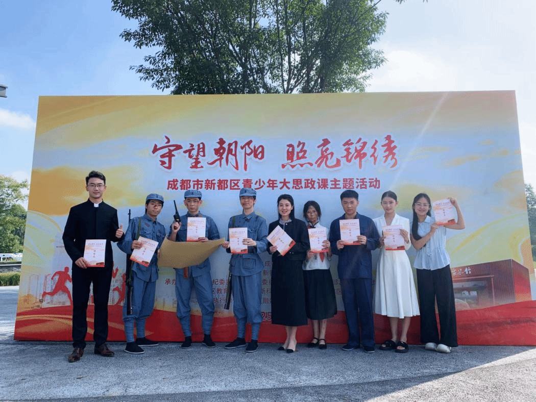9月24日上午,由成都市新都区委主办的“守望朝阳 照亮锦绣”——新都区青少年大思政课主题活动在天府家风馆书香剧场隆重举行。西南石油大学作为高校代表受邀参与,艺术学院研究生会作为承办方之一。我院本科学子和研究生代表以一场饱含深情的《烽火家书·青春声承》朗诵,带领全场观众穿越历史硝烟,重温赵一曼、王铭章等抗日英烈的家国情怀与信仰力量,赢得热烈掌声。