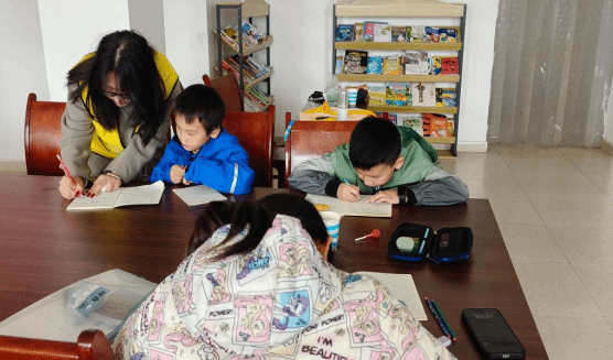在书法课上,志愿者手把手教孩子们握笔、运笔,从基本笔画到简单汉字,耐心纠正姿势,孩子们一笔一划认真练习,墨香中透着专注。