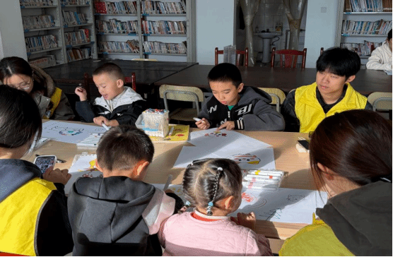 绘画课上,志愿者引导孩子们用色彩表达想象,有的画乡村美景,有的画未来家园,一张张画作尽显童真与创造力,志愿者不时驻足点评,鼓励大家大胆创作。