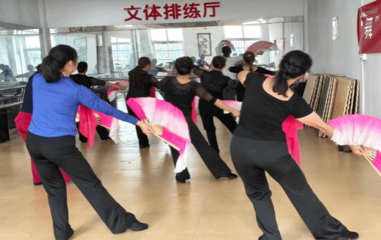另一边,形体课现场热闹非凡。志愿者针对嬢嬢们的需求,设计了简单易学的基础热身动作,讲解动作要领和发力部位,带领大家拉伸、舒展。嬢嬢们跟着节奏认真练习,不时互相交流动作细节,脸上洋溢着笑容。
