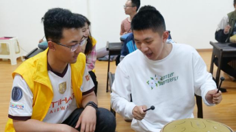 在自主演奏环节,孩子们纷纷拿起鼓槌,在同学们的指导下尝试演奏。有的孩子虽然节奏不够稳定,但却打得格外认真;有的孩子则发挥想象力,在鼓面上随意敲击,创造出属于自己的“音乐作品”,同学们也及时给予肯定和赞扬。当《小星星》的完整旋律从孩子们的手中流淌出来时,康复中心的老师们不禁鼓起掌来,有的老师还拿出手机记录下这温馨的瞬间。
