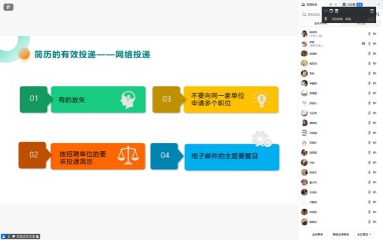 此外,朱蕊老师指出,投递环节不仅要精准把握微信、指定邮箱等投递渠道,更要注重电子邮件主题的醒目设计,避免盲目投递,以“有的放矢”的创新策略才能提升简历命中率。在求职礼仪与心态管理环节,会议倡导以积极的心态应对职场挑战。面试中,通过自信的姿态、适中简练的表达,传递积极向上的职业素养。