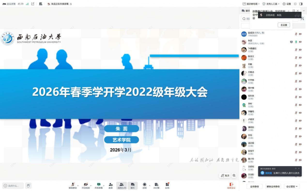此次各年级新学期大会的召开,精准对接不同学段学生的成长需求与发展痛点,既为学生厘清了新学期的学习与发展思路,也进一步强化了学院的年级教育管理工作。艺术学院全体学子将以此次大会为契机,收心聚力、笃行实干,以全新的面貌和昂扬的斗志迎接新学期的各项挑战,在逐梦路上稳步前行。