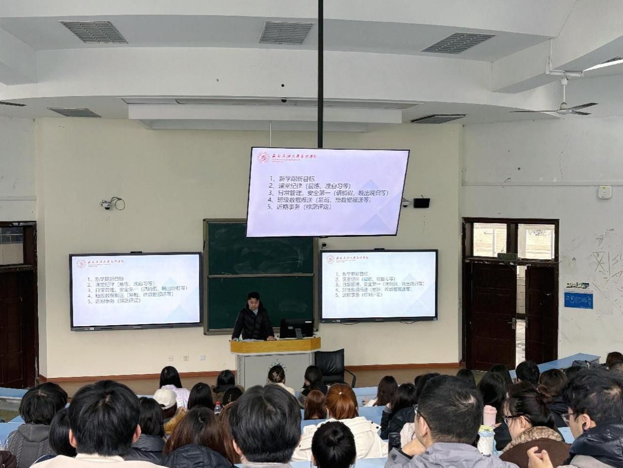 2023 级紧扣大三下学期关键节点,辅导员曹大伟老师围绕本学期重点任务展开全面部署。他要求同学们认真梳理学业进度,确保学分、课程、实践等各环节达标,为顺利完成本科阶段学习筑牢基础;针对即将到来的大四生活,重点强调要提前规划个人发展路径,明确考研、就业、实习等发展目标,主动搜集相关信息、积极备战。此外,还从校园安全、日常管理、心理健康等方面提出明确要求,叮嘱学生珍惜在校时光,端正学习态度,全面提升综合能力,以积极状态迎接新阶段挑战。