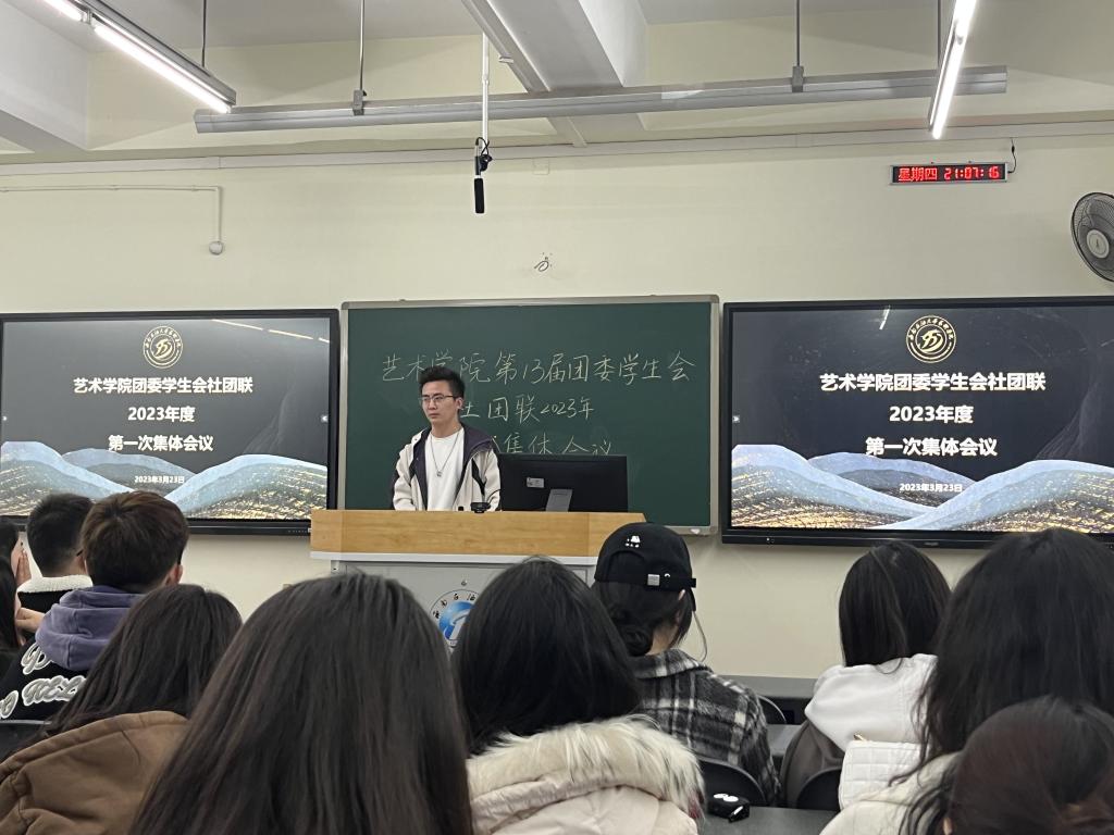 3月23日晚,我院团委学生会社团联在思学楼B204举行了2023年度第一次集体会议。学生会主席、各部门部长以及曹大伟、朱蕊两位老师分别在会上总结了前一阶段的部分问题,并向各位委员提出了新的要求和期许。