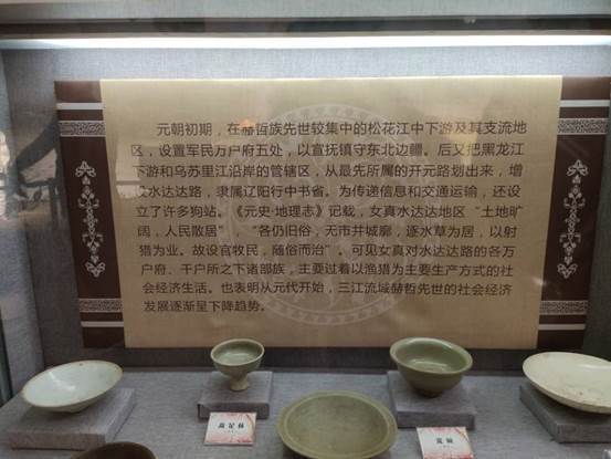 队员们首先先对有着纪念赫哲族历史的纪念馆进行了探访,初步的了解了赫哲族的发展历史。赫哲族是中国东北地区一个历史悠久的少数民族,民族语言为赫哲语,属阿尔泰语系满-通古斯语族满语支(也有观点认为应归入那乃次语支),没有本民族的文字,使用西里尔字母来记录语言,因长期与汉族交错杂居,通用汉语。由于居住地域广阔,赫哲人的自称较多,如"那贝"、"那乃"、"那尼傲","赫哲"作为族称最早出现于康熙二年(1663)三月,1934年凌纯声《松花江下游的赫哲族》一书出版后,"赫哲"作为族称开始广泛传播。赫哲族主要分布于黑龙江、松花江、乌苏里江交汇构成的三江平原和完达山余脉,集中居住于三乡两村,即同江市街津口赫哲族乡、八岔赫哲族乡、双鸭山市饶河县四排赫哲族乡和佳木斯市敖其镇敖其赫哲族村、抚远县抓吉镇抓吉赫哲族村。