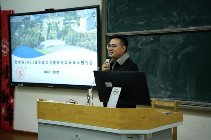 冬春更替,万象更新。3月3日晚,我院2023级年级风采大会暨班级风采报告展示会在思学楼B210举行。会议由学院团委副书记、2023级本科生辅导员李安然主持,艺术学院2023级全体学生参与会议。