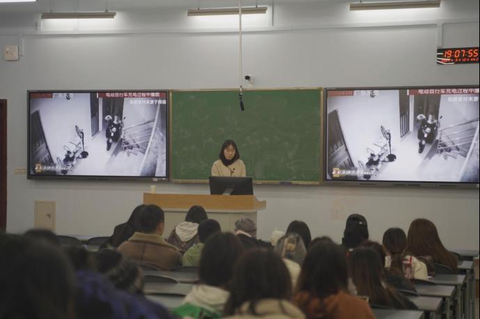 会上,大家观看电动车火灾警示教育片,充分认识到电动车存在的巨大安全隐患。朱蕊强调了电动车专项治理的必要性,要求全体同学要高度重视电动车专项治理工作,自觉遵守学校相关管理规定,杜绝违规行为。她提醒各位同学要注意交通安全、严禁超速、违章骑行,保障自身和他人的安全,共同维护良好的校园交通秩序。