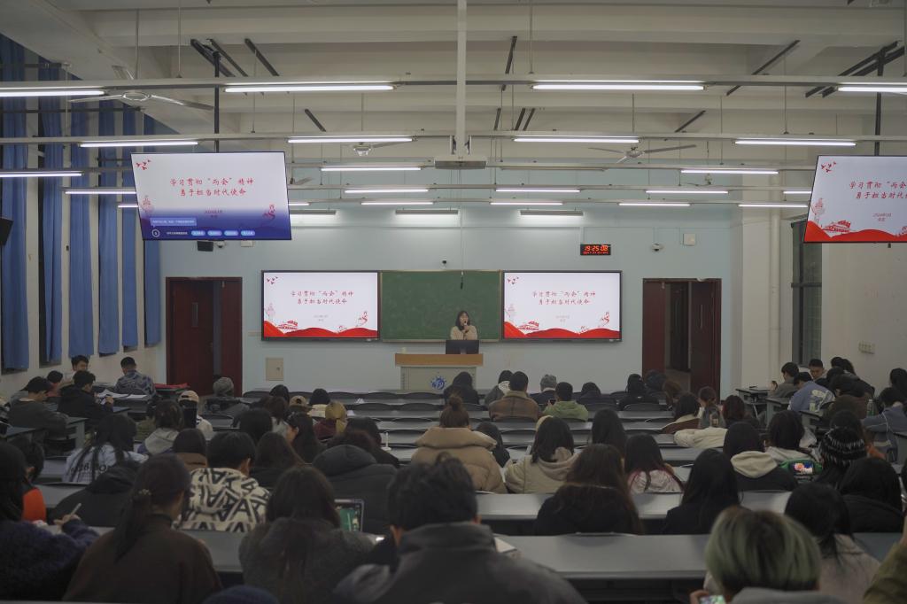 学雷锋,做榜样。朱蕊向同学们讲述了雷锋精神的内容与意义,并表扬了2022级中主动为年级、为学院做出贡献又不计回报的同学。她鼓励同学们,作为新时代的大学生,应该积极学习雷锋精神,将其作为自己的人生信条和行为准则,让学雷锋在青年大学生中蔚然成风。