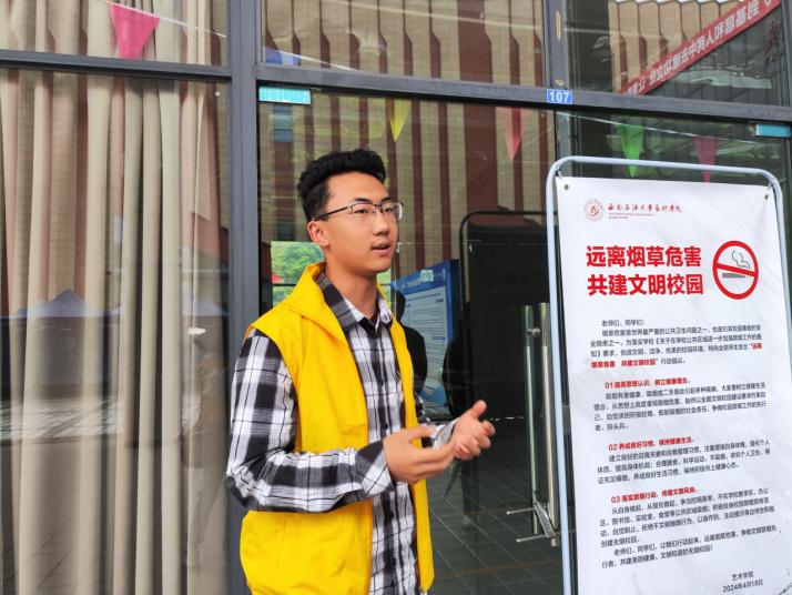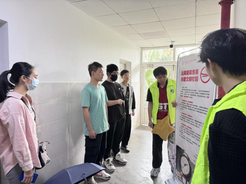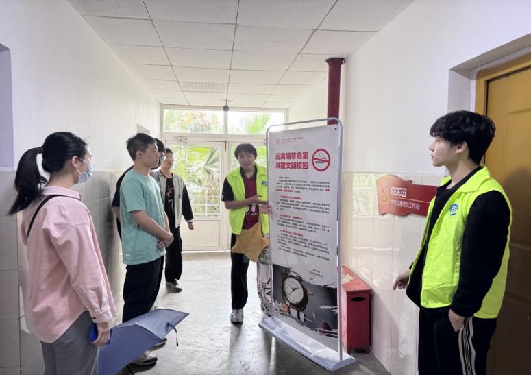 在学生干部带领下,志愿者们积极开展禁烟路边、微社区宣讲会,进一步呼吁学生主动禁烟,建设无烟校园,为师生营造一个无烟、清洁、健康的学习、工作和生活环境。随后,学院开展禁烟检查活动,检查禁烟情况,让拒绝烟草,拒绝二手烟,成为主流。志愿者们面向同学们发布倡议书,倡导同学们宣传吸烟的危害,主动、耐心地劝阻吸烟者,做禁烟行动的义务宣讲员和志愿者。要求大家主动学习和宣传吸烟危害健康的相关知识,提高防控烟草危害的意识和能力。