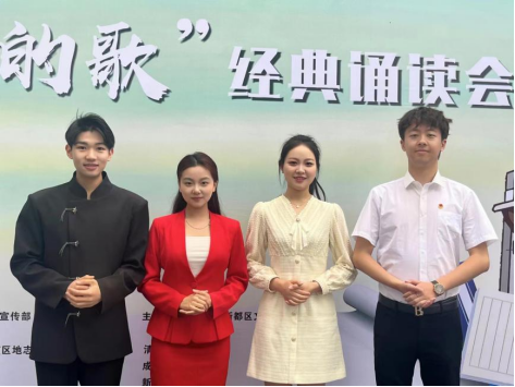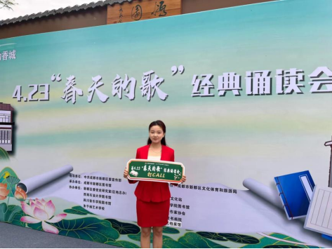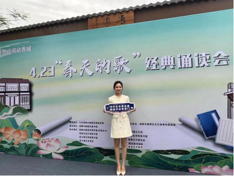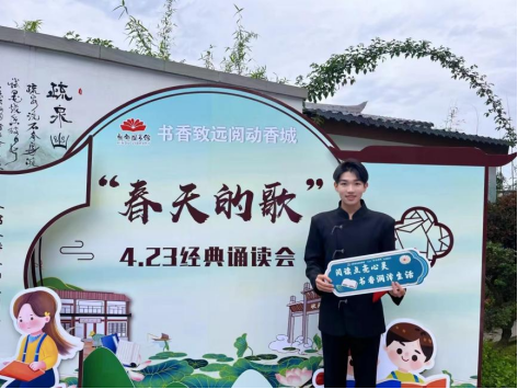 “春色恰如许,读书正当时”每年的4月23日是“世界读书日”,为了秉持“希望散居在全球各地的人们,无论你是年老还是年轻,无论你是贫穷还是富有,无论你是患病还是健康,都能享受阅读带来的乐趣。”世界读书日的主旨宣言,艺术学院播音与主持艺术专业2022级和2023级的张潍诗、王泽宇、冯成鸿、唐泽代表西南石油大学图书馆参加由成都市新都区图书馆承办的4.23“春天的歌”经典诵读会活动。四位同学表现优异,获得在场领导和朗读者们的好评。