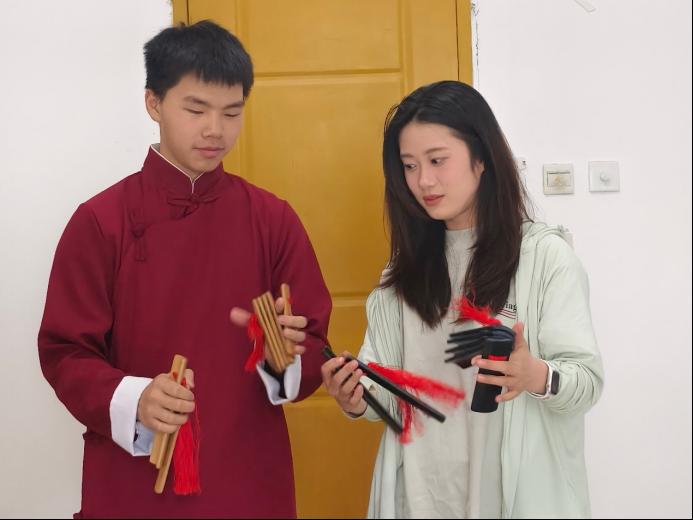 教学活动精心设计,既有理论传授,又有实践体验。在理论环节,樊甘霖同学深入浅出地讲解了相声快板的历史渊源、表演特点以及技巧要领,使学员们对这门传统艺术有了更为全面和深入的了解。在实践环节,学员们分组进行创作和表演,通过亲身实践,不仅锻炼了演技和表达能力,更深刻体会到了相声艺术的魅力。