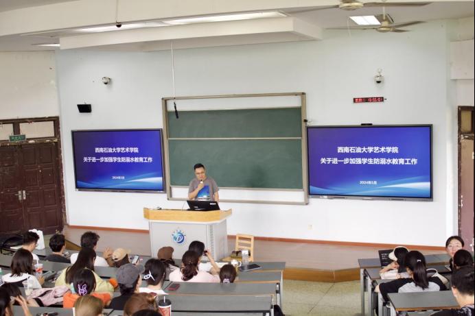 随着气温升高,学生防溺水工作进入关键时期。为进一步加强学生安全教育,提高防溺水意识,帮助学生学习掌握防溺水安全知识和技能,艺术学院2023级在思学楼C210召开了防溺水教育大会。此次大会由院团委副书记、2023级本科生辅导员李安然主持。