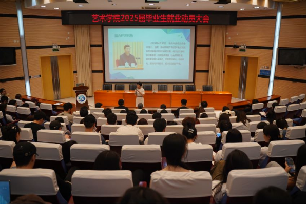 6月6日下午,艺术学院在思学楼A114成功举行2025届毕业生就业动员大会,学院党委副书记、纪委书记何姗,2025届毕业生辅导员曹大伟及全体2025届毕业生参加了会议。本次大会旨在帮助2025届毕业生们更好地了解就业形势,明确就业目标,增强就业信心,为即将到来的求职之旅做好充分准备。