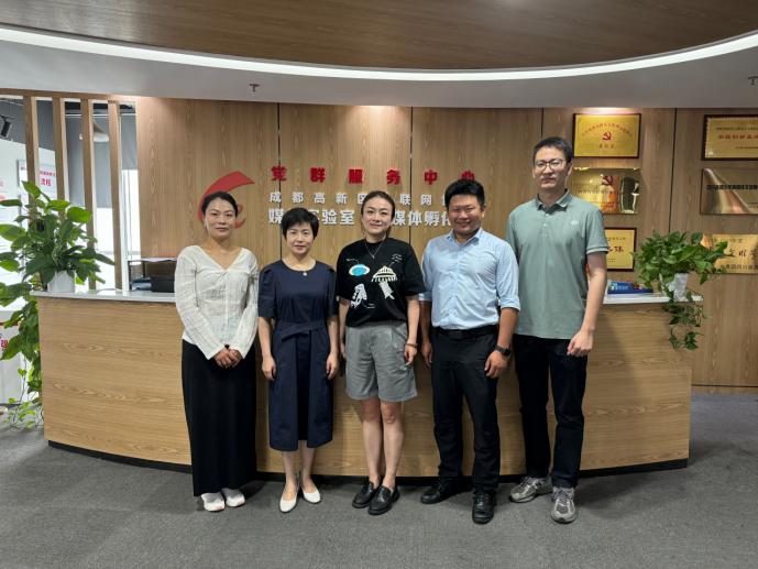 为持续深化落实学校“四访四促”工作要求,进一步挖掘实习就业机会,为2025届毕业生更高质量充分就业夯实基础,7月4日上午,艺术学院党委副书记、纪委书记何姗,院长助理、广播电视编导教研室主任李序,2025届毕业生辅导员曹大伟一行,赴成都市高新区互联网协会调研交流,并走访其下属新媒体孵化器企业成都市芯媒荟孵化器管理有限公司。