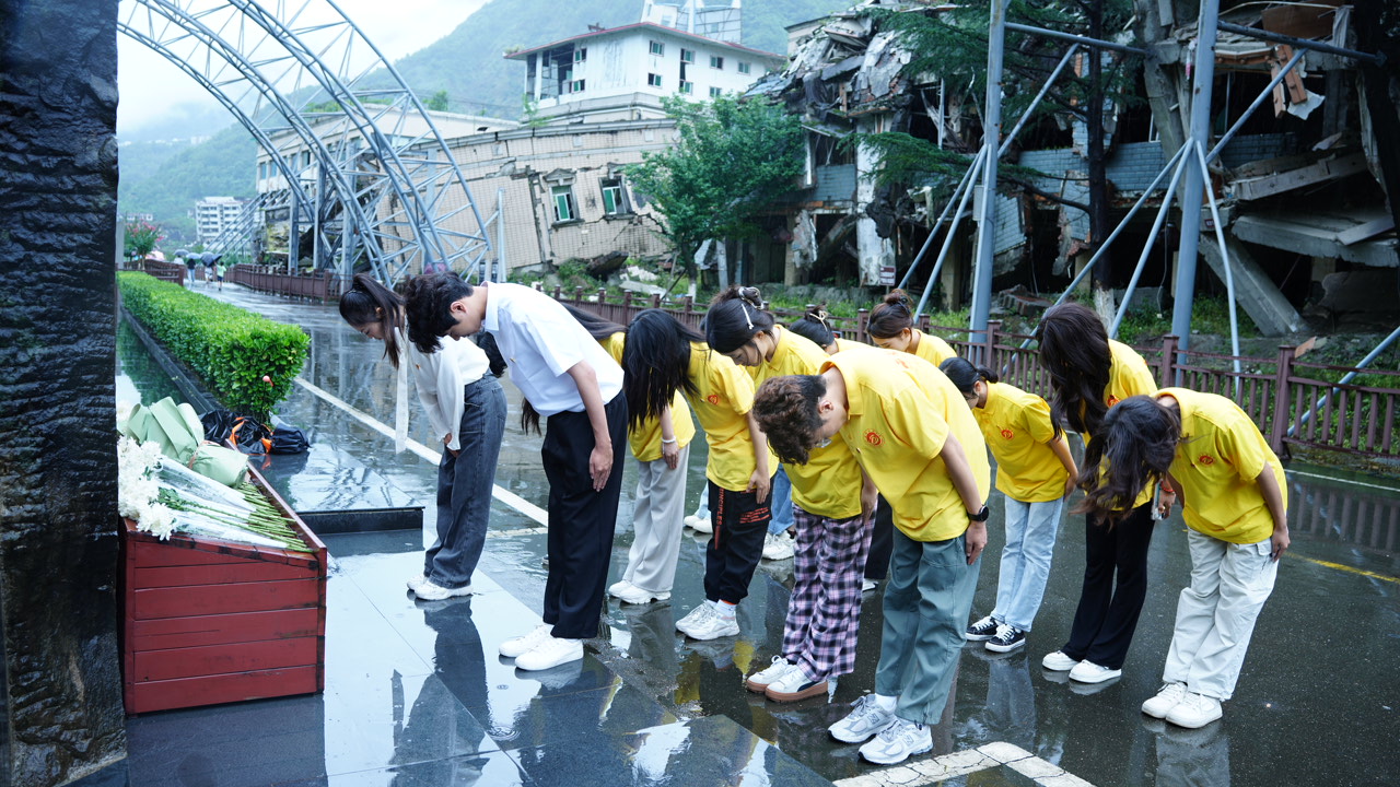 7月9日,“声声不息”青年实践队来到第三站,四川阿坝藏族羌族自治州的汶川纪念馆。在参观遗址的过程中,主讲人对废墟中的残破建筑进行逐一介绍,成员们透过眼前的断壁残垣,看到了2008年5月12日的那场无情天灾,看到了无数被夺去的鲜活生命。碑前,实践队成员集体肃立,鞠躬默哀,表达了对逝者的深切缅怀。