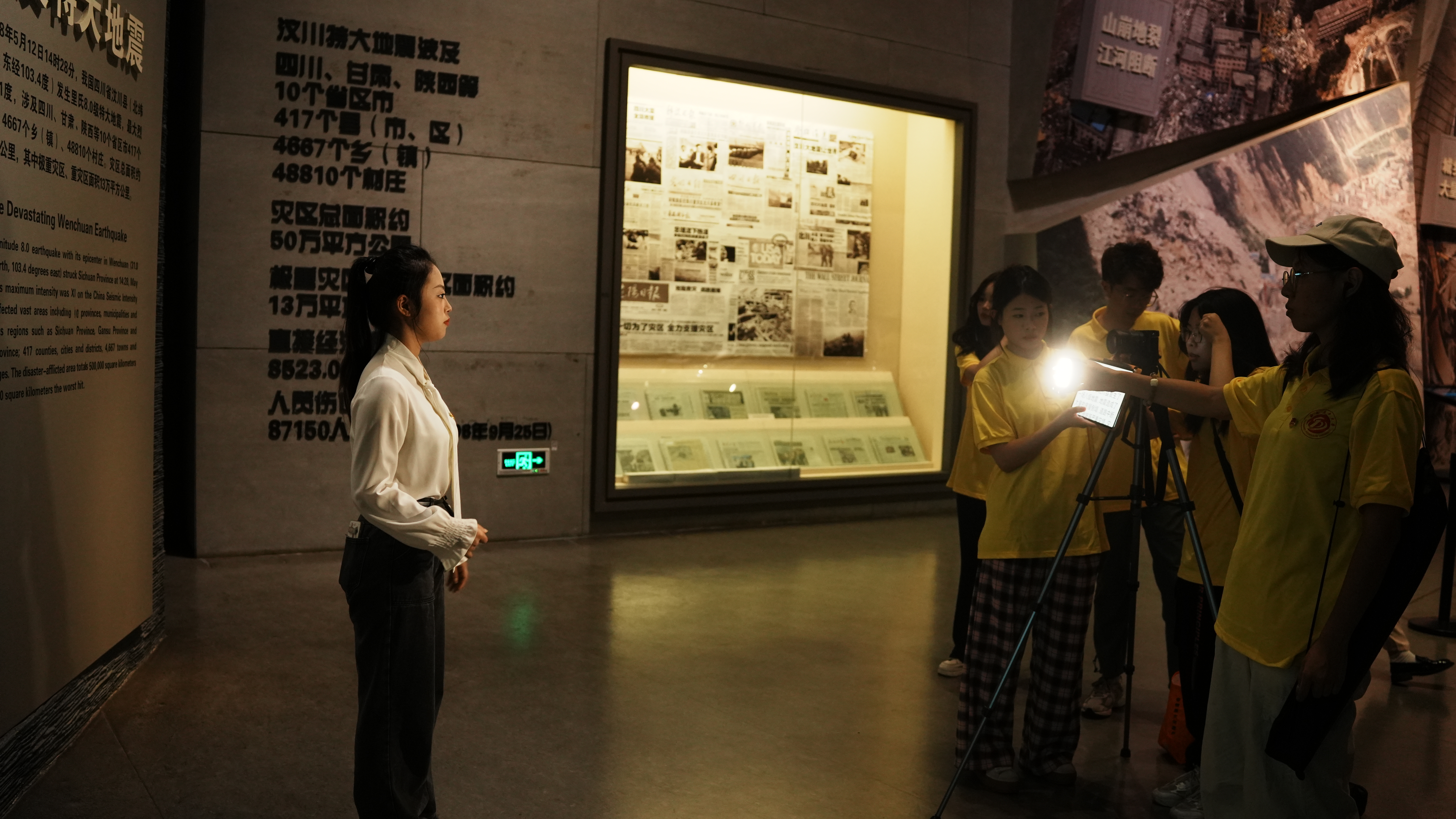 汶川地震,震不垮勇者的无畏心;八方驰援,援来了群众的无疆大爱。纪念馆忠实地还原了抗震救灾现场,在中国共产党的坚强领导下,中华民族万众一心、众志成城,在艰险中与时间赛跑,与死亡竞速。抗震救灾精神让成员们为之动容,在“共筑抗震救灾精神新篇章”的学生主讲环节,经过感悟与思考,成员们在镜头前分享了自己的体会。实践队队长、播音与主持艺术2023级学生黄嘉怡表示:“铭记历史,传承精神,青年当以坚韧之志,践行青春誓言,共筑国家繁荣梦。此次活动后,我将继续奋斗前行,勇担时代责任。”