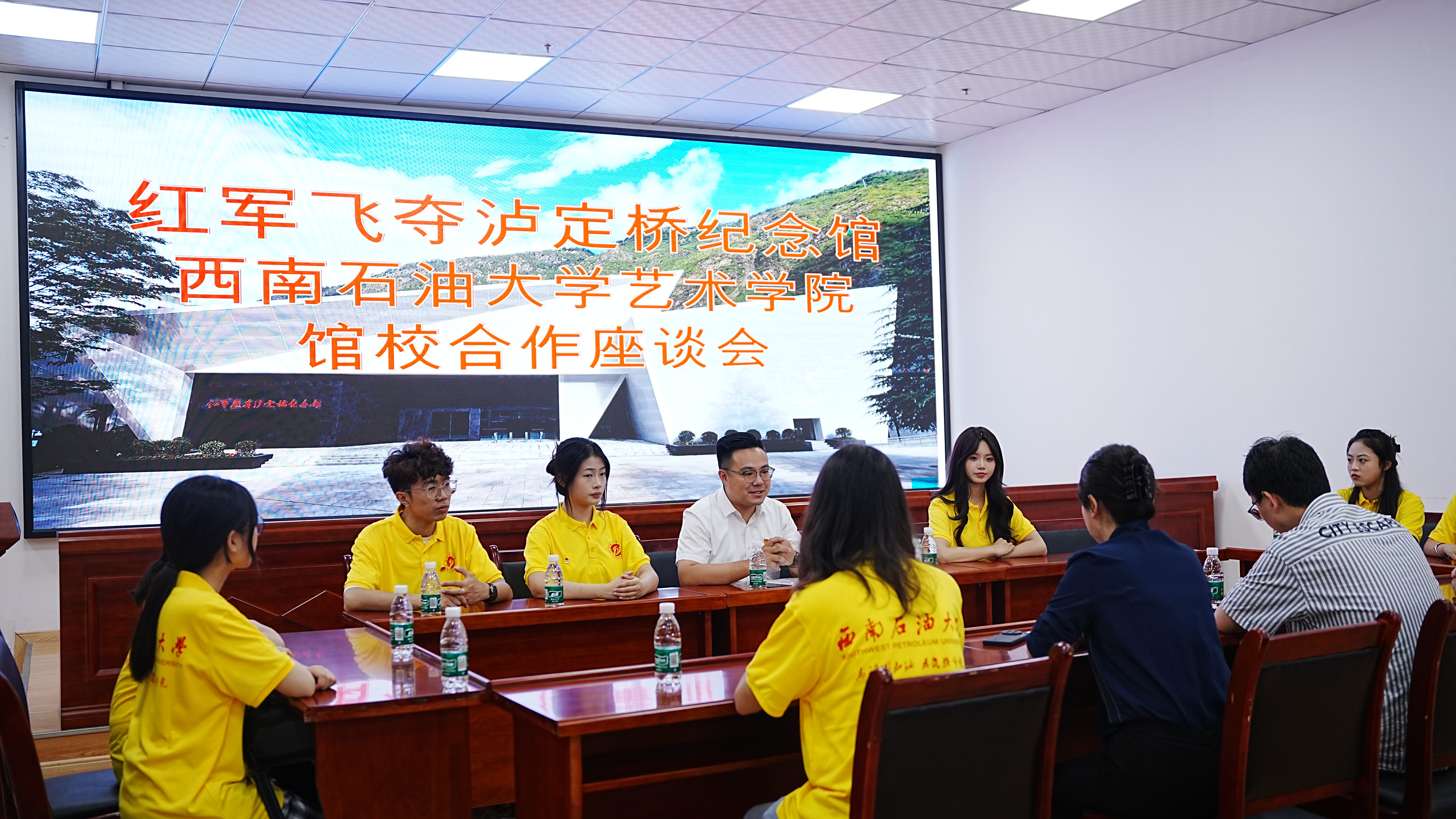 实践队的首站是红军长征的关键一程——四川省甘孜藏族自治州的泸定县,飞夺泸定桥的英勇故事诞生于此。7月5日,“声声不息”青年实践队与红军飞夺泸定桥纪念馆相关负责人举行座谈会,共青团泸定县委副书记熊小奇、红军飞夺泸定桥纪念馆宣教股股长杨梦玫与会交流。会上,双方就爱国主义教育基地建设形式、合作内容等内容进行了沟通,签订协议并授牌,这标志着双方将携手为新时代传承弘扬共产党人的伟大精神贡献力量。艺术院团委副书记、“声声不息”青年实践队指导老师李安然表示:“此次泸定县的实践交流,为艺术学院师生开展爱国主义教育开辟了新的阵地,为强化馆校共建,探索了新的路径和模式。”