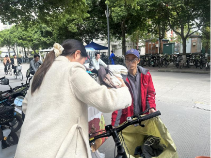 实践部部长卢思颖带领部员佘思宇和官芷伊提前到达双创大楼,布置活动现场。在这个充满温情的行动中,研究生们踊跃参与,大家将一件件闲置衣物仔细整理打包,提交给研会的工作人员,现场堆积如山的衣物如同爱的小山丘,承载着满满的关怀。下午两点三十活动结束,共计收到了30余件同学们捐赠的衣服,在由部长转交给快递员,将同学们的爱心传递到更远的地方。