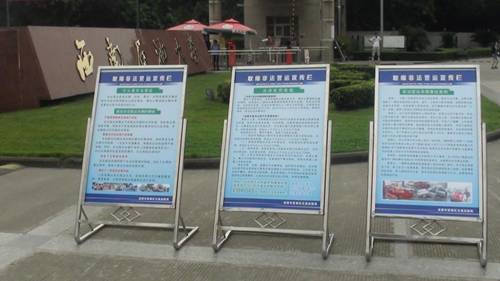 活动中区交通运输管理执法大队准备了几千份宣传单向过往师生、群众散发,并现场讲解“黑车”的类别及乘坐黑车的危害性等,通过宣传展板上一个个警示案例,提高师生员工拒绝搭乘“黑车”的安全防范意识。