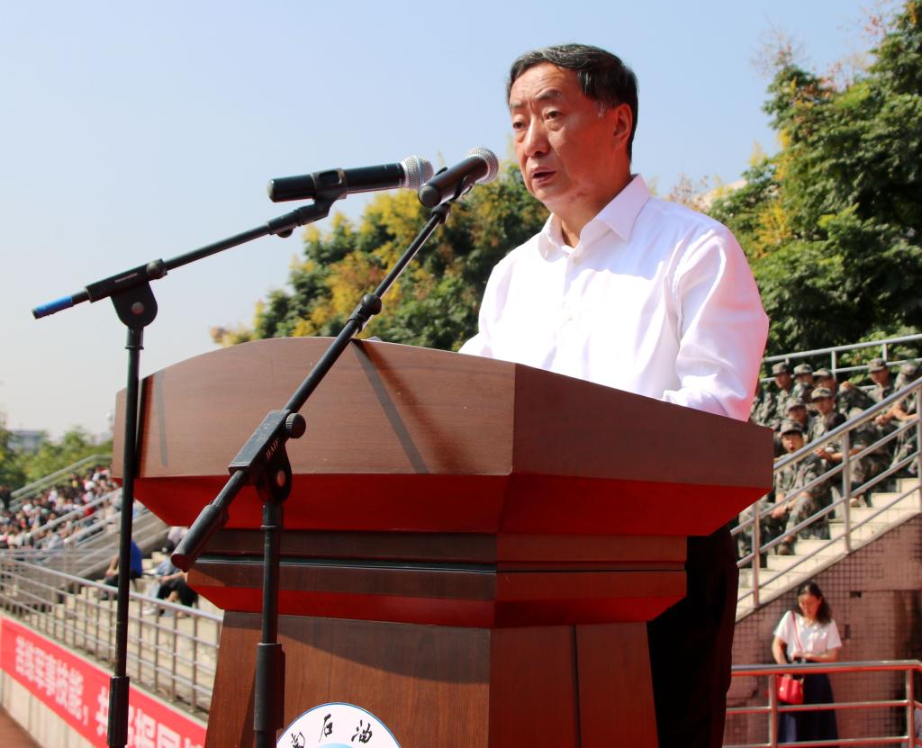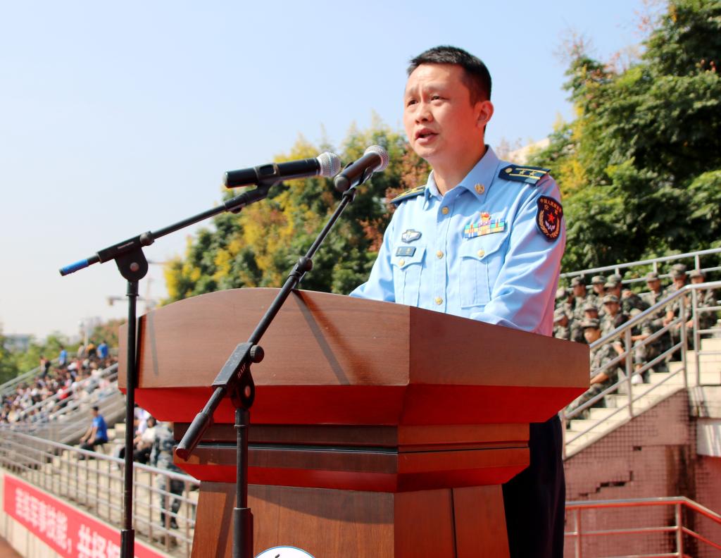 孙一平代表学校党委、行政,向关心学校发展的中国人民解放军95607部队、四川省军区战备建设局和新都区人民武装部的领导致以崇高的敬意;向为本次军训工作付出辛勤汗水的教官、老师表示衷心的感谢;向顺利完成军训任务的2019级新同学表示热烈的祝贺。