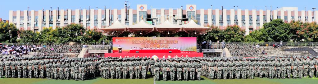 中国人民解放军95607部队副政委罗勋中校,新都区委常委、人民武装部部长李恒上校,校党委书记孙一平,校长赵金洲,校党委副书记、纪委书记郭世一出席大会。校武装部、党办校办、学工部、校团委、教务处及各学院、军训团负责人,全体承训教官,新生辅导员参加了大会。大会由学工部部长蒲勇主持。