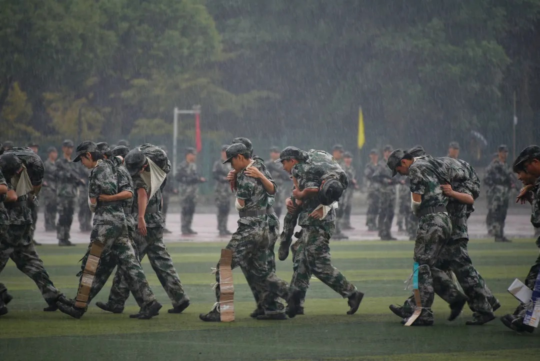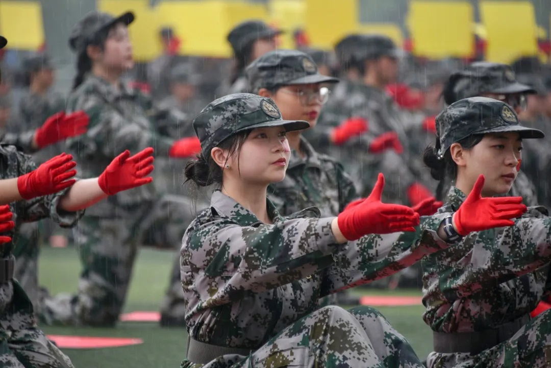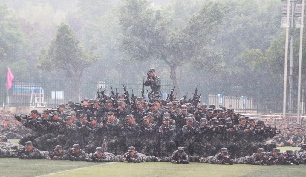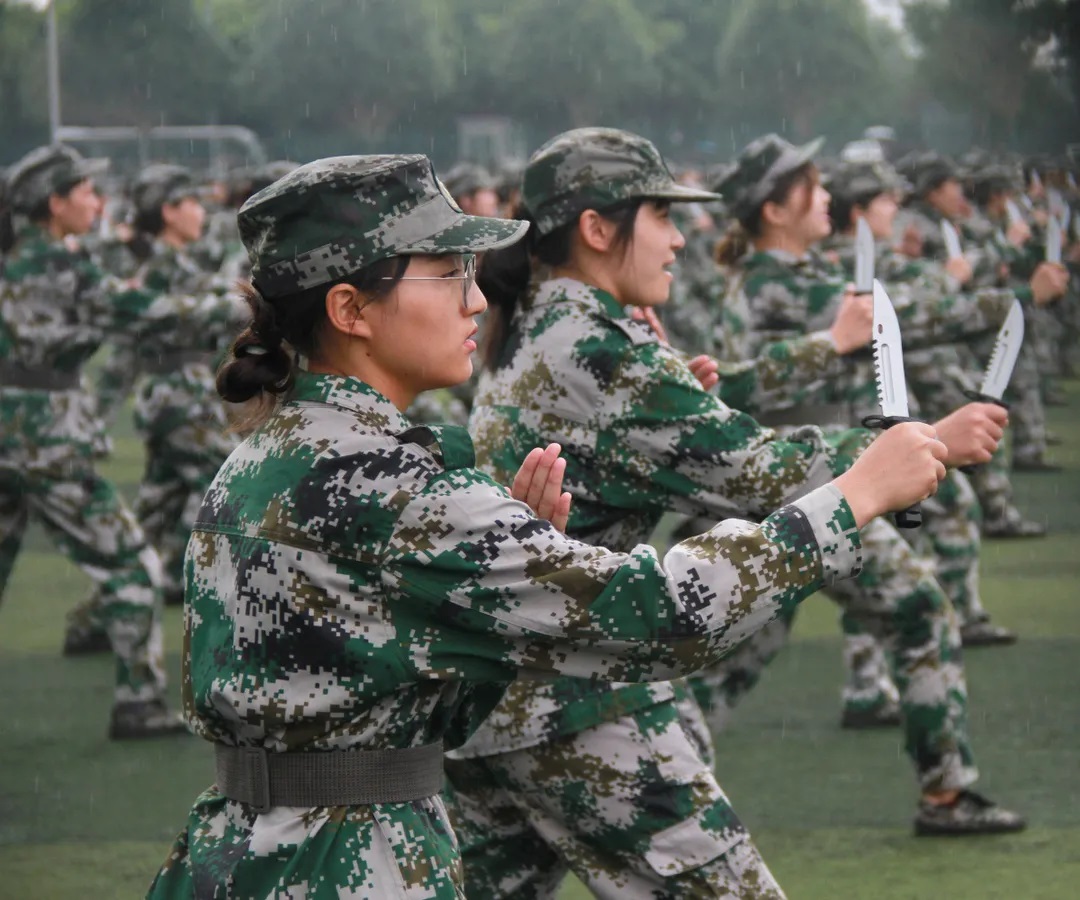 随后进行了军事技能表演。擒敌拳方队、战术方队、匕首操方队依次登场。整齐的动作,响亮的口号,无不彰显着军魂和同学们顽强的作风。