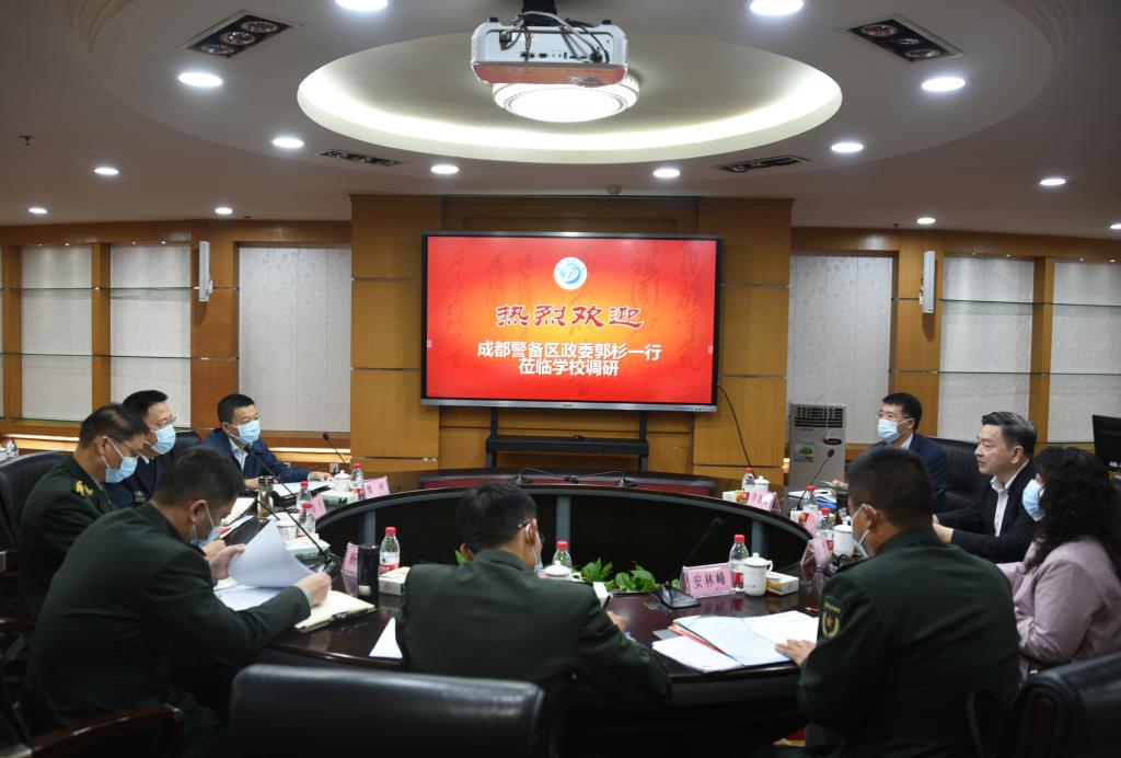 4月22日上午,成都警备区政委郭杉,新都区委副书记魏柯一行来校调研国防教育和征兵工作。校党委书记陈永灿,校党委副书记、工会主席衡彤会见了郭杉一行。三方围绕深化征兵合作、强化国防教育和人才培养、加大征兵宣传力度等进行了座谈交流。陈永灿主持座谈会。