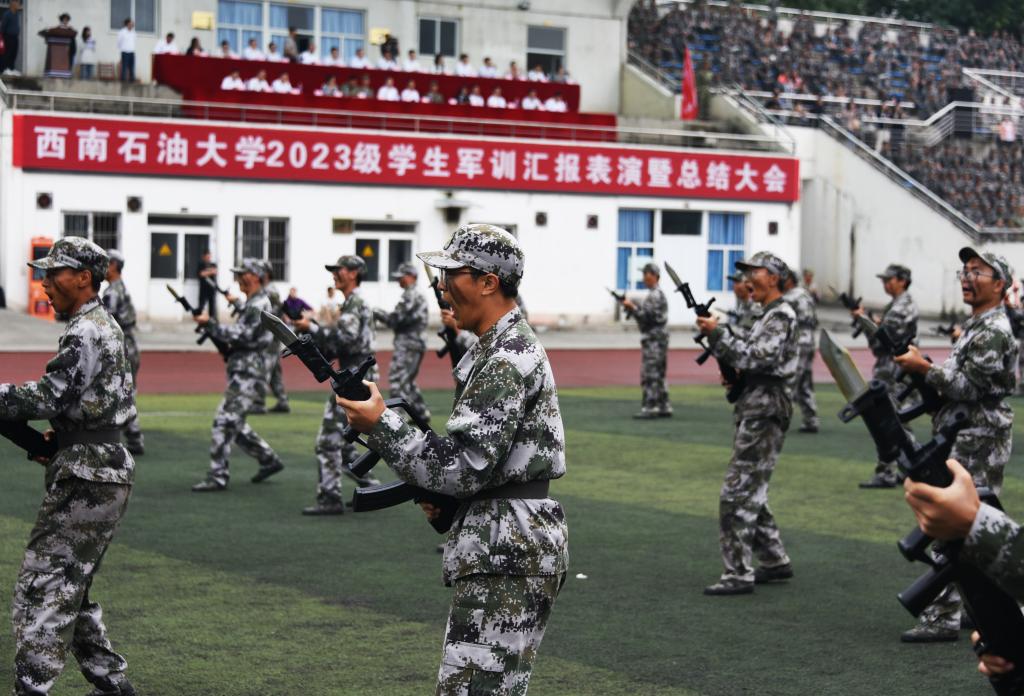 9月25日上午,成都校区2023级本科生军训汇报表演暨总结大会在一期田径场举行。6000余名学生经过刻苦训练,圆满完成了军训任务,用精彩的汇报表演向学校交了一份满意答卷。