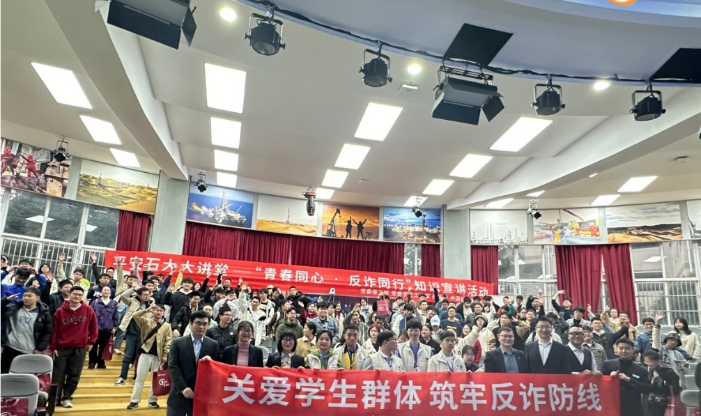 3月14日下午,由党委保卫部、党委学工部、校团委联合主办、中国银行赞助的平安石大大讲堂(第1讲)“青春同心·反诈同行”反诈宣传教育活动在思学楼C110成功举行。中国银行新都支行行长徐林虎、新都区公安分局刑警大队副大队长杜怡宏、党委保卫部部长蒲冠州,学工部、校团委相关工作负责同志、学校反诈志愿服务宣讲团及200余名学生代表参加了本次活动。