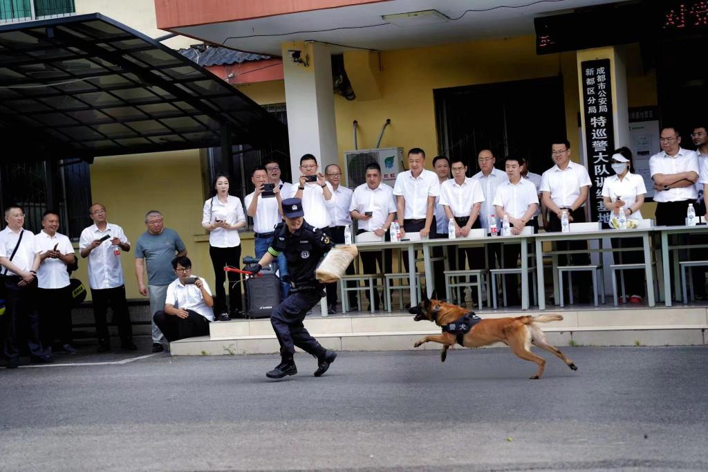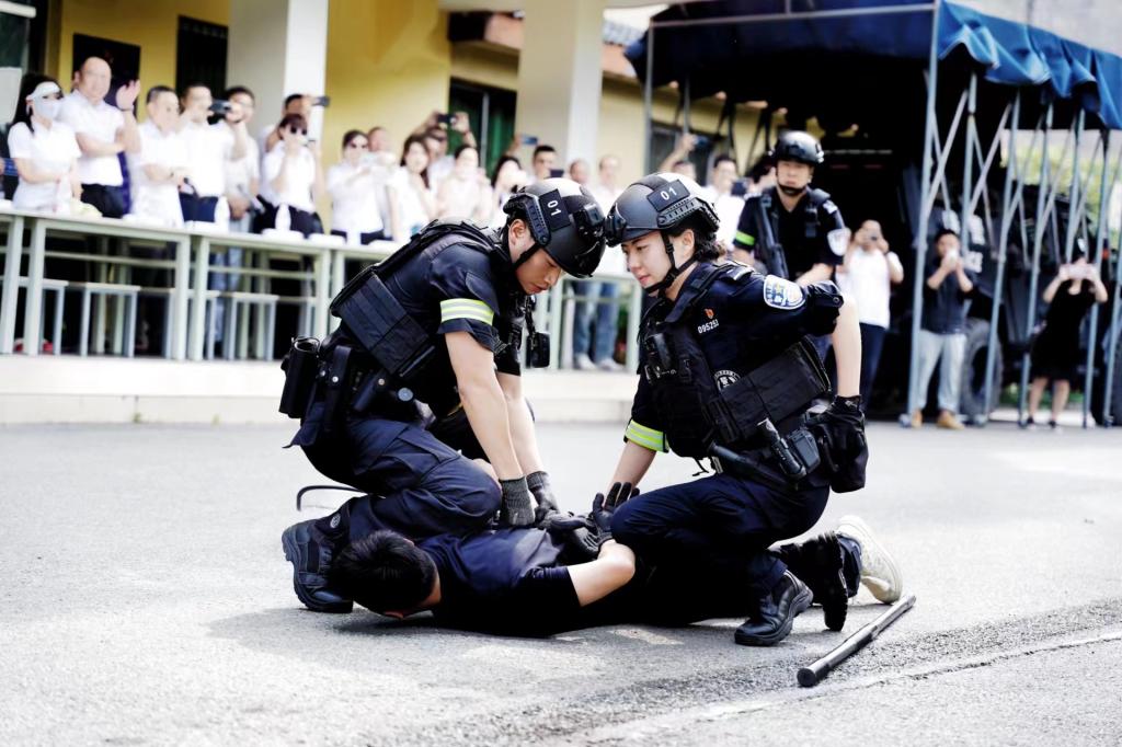 在活动中,特警队员们通过讲解示范、情景模拟、实战演练的方式,为参训人员进行各类常见突发事件的先期处置以及应对技能培训,并向大家展示了一系列警用器械装备。参训人员还现场观摩了特警铁骑的s型绕桩、警犬训练、警棍盾牌操、格斗训练等多个科目演示,特警们娴熟的警务实战技能和饱满的精神状态赢得了大家阵阵掌声和连连称赞。