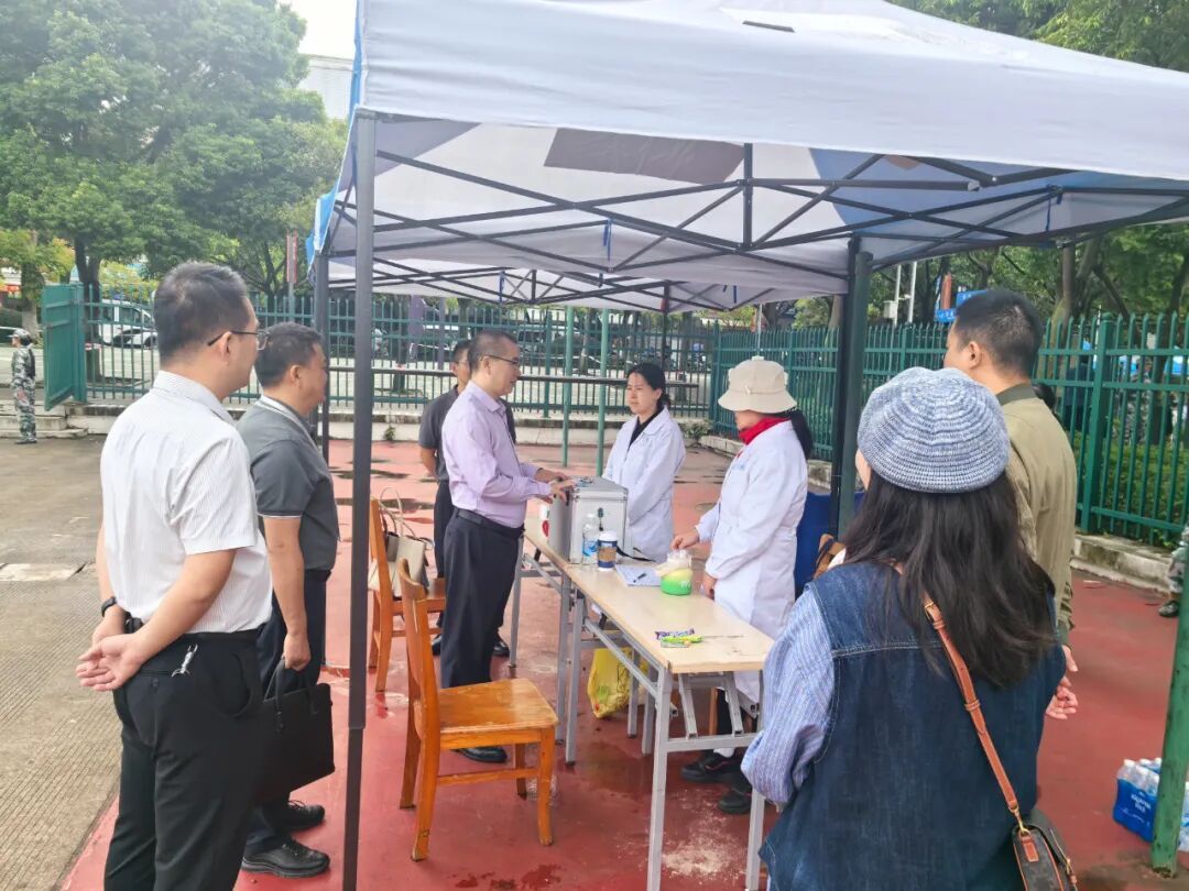 随后,丁林与承训教官亲切交谈,了解食宿等条件保障情况,感谢他们的辛勤付出,希望他们在严格施训的同时,注重科学组训,把军人的优良作风和过硬本领传授给学生。在医疗保障点,他慰问驻场医生,叮嘱他们要时刻待命,为新生的身心健康保驾护航。对于驻场工作人员,丁林也表达了谢意,肯定了他们在后勤保障、秩序维护、应急处置等方面的工作,要求大家继续做好服务工作,为军训工作顺利推进提供有力支撑。