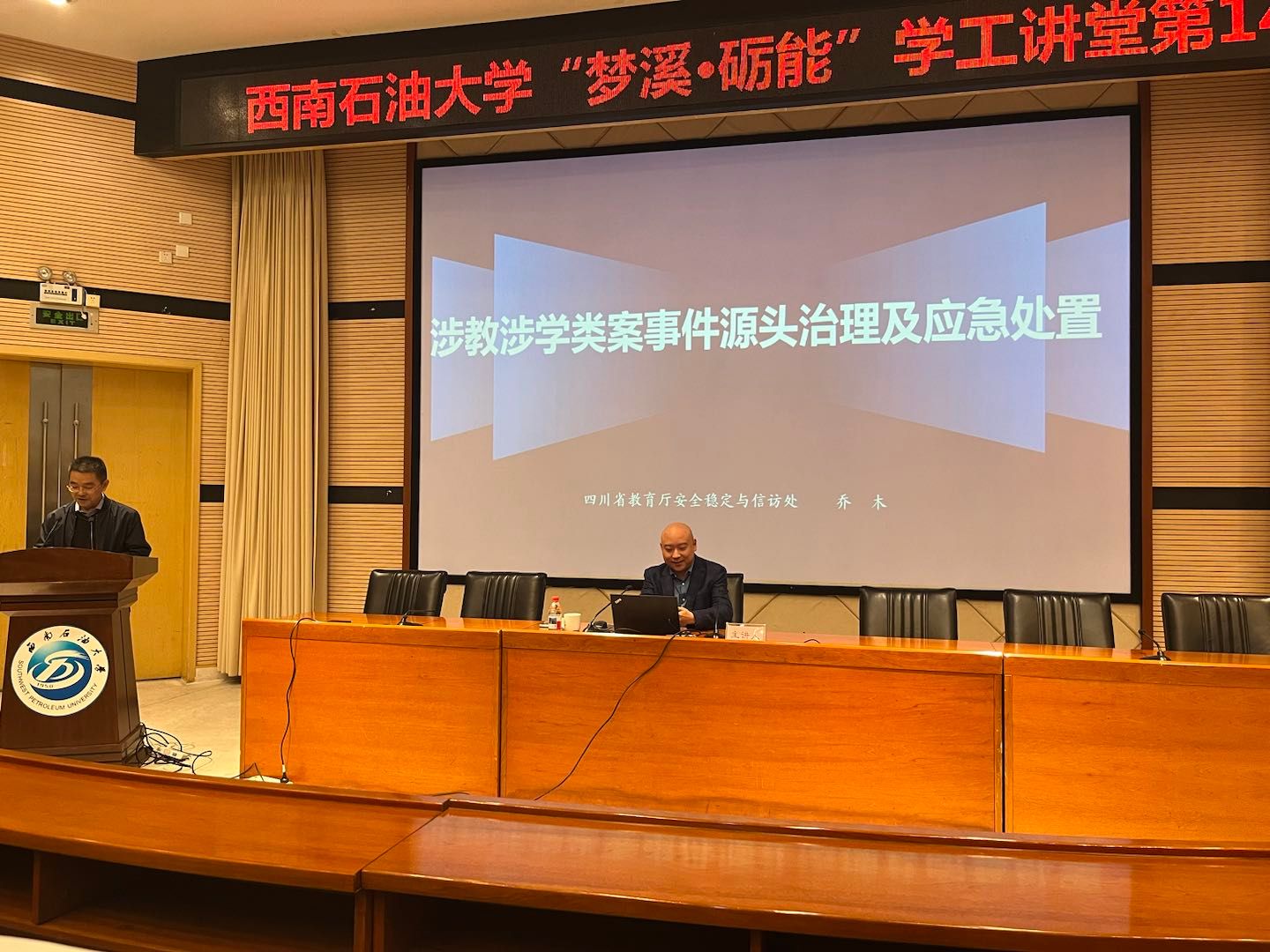 11月4日下午,学校邀请四川省教育厅安全稳定与信访处处长乔木到校开展校园突发事件源头治理与应急处置专题培训。学校各二级学院副书记、辅导员及学工部、保卫处等单位150余人参加培训。