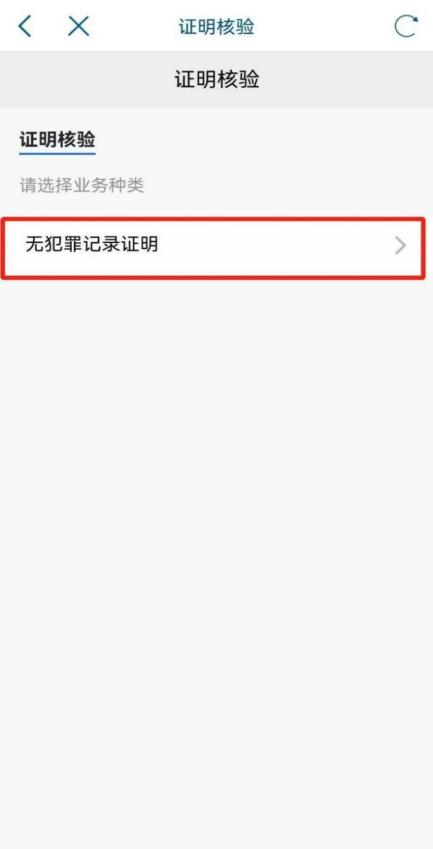 10、核验,点击“无犯罪记录证明”进入证明核验页面,选择“无犯罪记录证明”栏目扫码,核验页面电子版展示,根据核验结果进行展示。