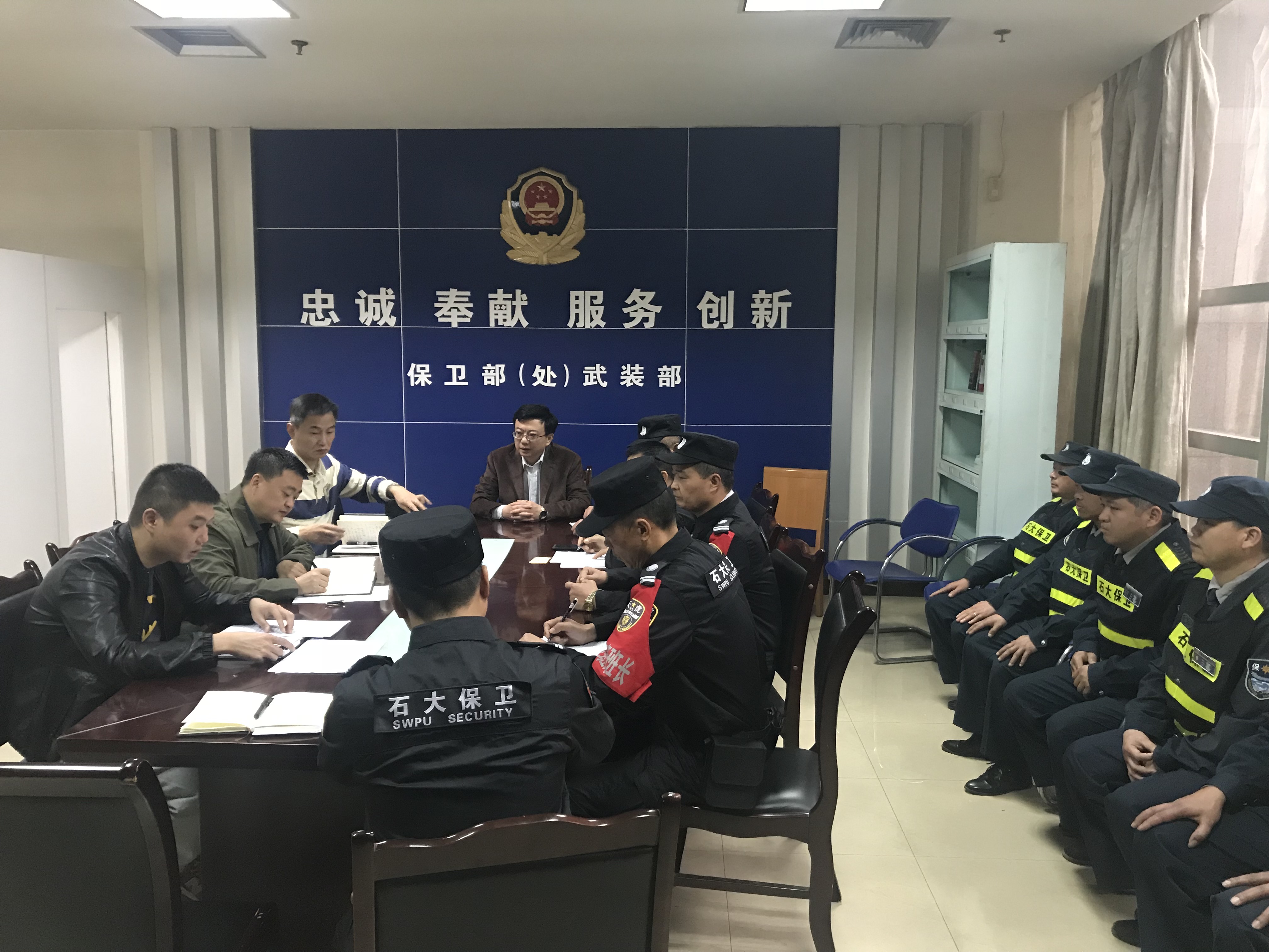4月10日上午,保卫处在办公楼108室就南大门设立“文明执勤示范岗”、东大门设立“热情服务示范岗”召开工作部署会议。会议由保卫处处长邓洪波主持,分管处领导及治安科工作人员、保安公司代表参加了会议。